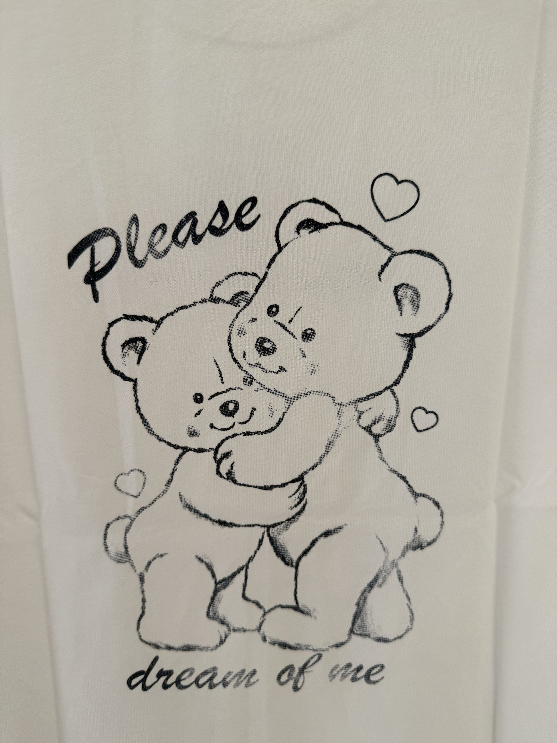 T-shirt with Dream of me print, white, crew neckline, short sleeves, long length, relaxed fit.