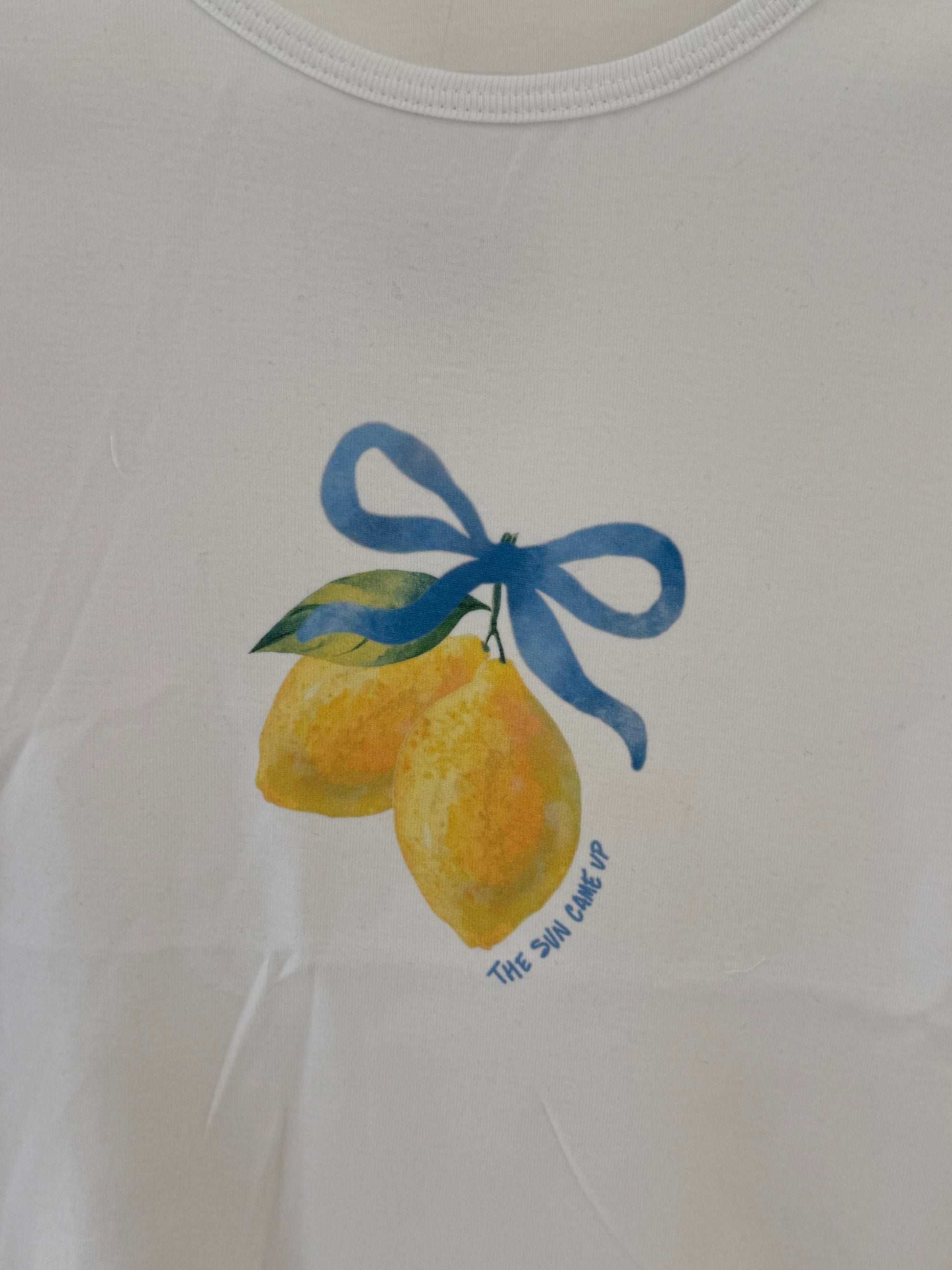 T-shirt with Lemons and The sun came up print, white, crew neckline, short sleeves, regular length, relaxed fit.